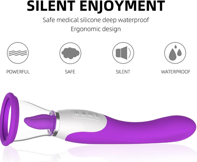 Цей жіночий кліторальний стимулятор відрізняється привабливим всмоктуванням, всмоктуванням з облизуванням мови та 10 різними видами вібрацій зі звуком нижче 50 децибелів, щоб задовольнити всі сексуальні потреби.